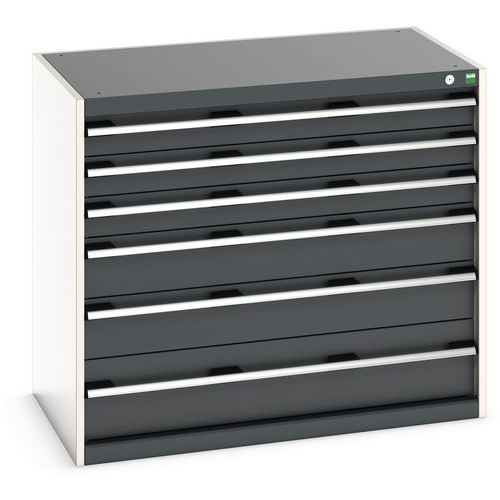 Armoire à tiroirs Cubio, Charge maxi: 1500 kg, Matériau: Acier, Hauteur hors tout: 900 mm, Nb de tiroirs: 6