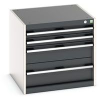 Equerres de renfort pour une meilleure rigidité, charge admissible : 1 tonne Tiroirs standard pour charges 75 Kg. Montés sur roulements avec une extension télescopique à 100% (ouverture totale). Poignées ergonomiques permettant le passage de la main par de dessus ou le dessous, système de blocage des tiroirs en standard, verrouillage individuel des tiroirs disponible en option. Conseils de sécurité : - installer le meuble sur une surface plane - le fixer sur un mur ou une cloison avec une fixation adaptée - veiller à ne pas dépasser la charge maximum conseillée, ainsi qu’à sa bonne répartition Fabriqué au RU Charge maxi (kg) : 1500 kg