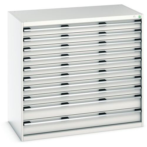 Armoire à tiroirs Cubio, Charge maxi: 1500 kg, Matériau: Acier, Hauteur hors tout: 1200 mm, Nb de tiroirs: 10