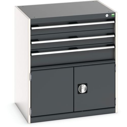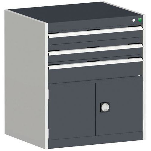Poignées ergonomiques permettant le passage de la main par de dessus ou le dessous, système de blocage des tiroirs en standard, verrouillage individuel des tiroirs disponible en option.