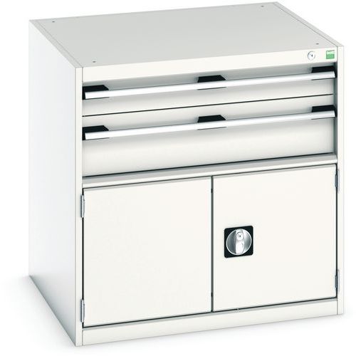 Poignées ergonomiques permettant le passage de la main par de dessus ou le dessous, système de blocage des tiroirs en standard, verrouillage individuel des tiroirs disponible en option.