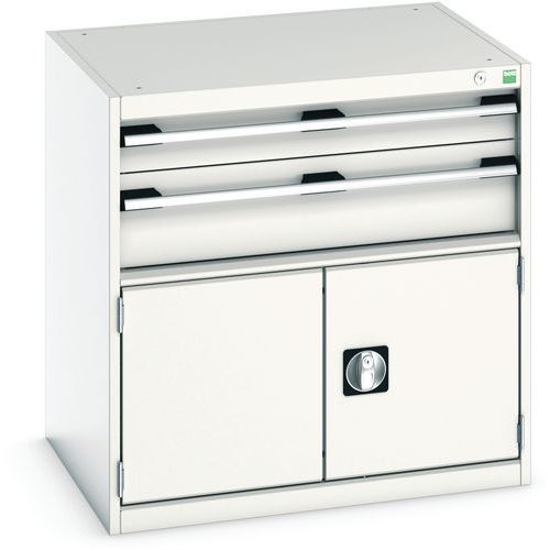 Poignées ergonomiques permettant le passage de la main par de dessus ou le dessous, système de blocage des tiroirs en standard, verrouillage individuel des tiroirs disponible en option.