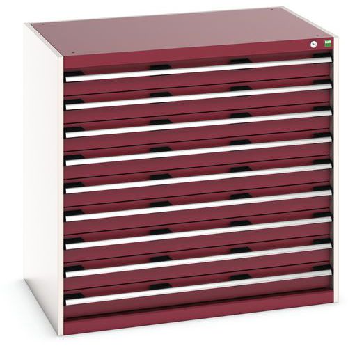 Armoire à tiroirs très robuste et de haute qualité. Tiroirs extractibles et pleinement accessibles. Glissières avec fermeture automatique et blocage de sécurité empêchant l'ouverture intempestive. Les poignées des tiroirs peuvent accueillir une étiquette. Avec verrouillage central des tiroirs. Conseils de sécurité : - installer le meuble sur une surface plane - le fixer sur un mur ou une cloison avec une fixation adaptée - veiller à ne pas dépasser la charge maximum conseillée, ainsi qu’à sa bonne répartition Fabriqué au RU Charge maxi (kg) : 1500 kg