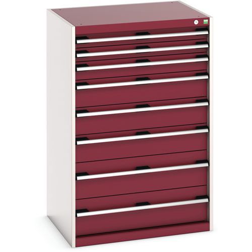 Armoire à tiroirs très robuste et de haute qualité. Tiroirs extractibles et pleinement accessibles. Glissières avec fermeture automatique et blocage de sécurité empêchant l'ouverture intempestive. Les poignées des tiroirs peuvent accueillir une étiquette. Avec verrouillage central des tiroirs. Conseils de sécurité : - installer le meuble sur une surface plane - le fixer sur un mur ou une cloison avec une fixation adaptée - veiller à ne pas dépasser la charge maximum conseillée, ainsi qu’à sa bonne répartition Fabriqué au RU Charge maxi (kg) : 1500 kg