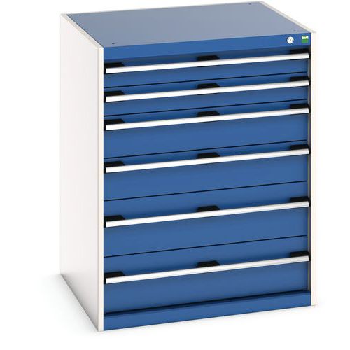 Armoire à tiroirs très robuste et de haute qualité. Tiroirs extractibles et pleinement accessibles. Glissières avec fermeture automatique et blocage de sécurité empêchant l'ouverture intempestive. Les poignées des tiroirs peuvent accueillir une étiquette. Avec verrouillage central des tiroirs. Conseils de sécurité : - installer le meuble sur une surface plane - le fixer sur un mur ou une cloison avec une fixation adaptée - veiller à ne pas dépasser la charge maximum conseillée, ainsi qu’à sa bonne répartition Fabriqué au RU Charge maxi (kg) : 1500