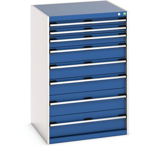 Armoire à tiroirs très robuste et de haute qualité. Tiroirs extractibles et pleinement accessibles. Glissières avec fermeture automatique et blocage de sécurité empêchant l'ouverture intempestive. Les poignées des tiroirs peuvent accueillir une étiquette. Avec verrouillage central des tiroirs. Conseils de sécurité : - installer le meuble sur une surface plane - le fixer sur un mur ou une cloison avec une fixation adaptée - veiller à ne pas dépasser la charge maximum conseillée, ainsi qu’à sa bonne répartition Fabriqué au RU Charge maxi (kg) : 1500