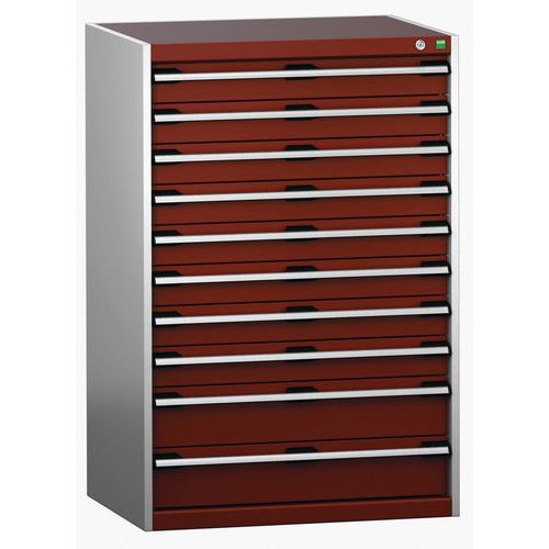 Armoire à tiroirs très robuste et de haute qualité. Tiroirs extractibles et pleinement accessibles. Glissières avec fermeture automatique et blocage de sécurité empêchant l'ouverture intempestive. Fabriqué au RU Charge maxi (kg) : 1500 kg