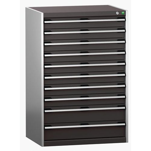 Armoire à tiroirs très robuste et de haute qualité. Tiroirs extractibles et pleinement accessibles. Glissières avec fermeture automatique et blocage de sécurité empêchant l'ouverture intempestive. Fabriqué au RU Charge maxi (kg) : 1500 kg