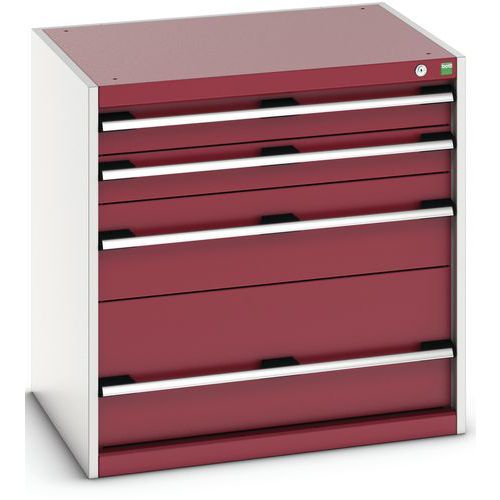 Armoire à tiroirs très robuste et de haute qualité. Tiroirs extractibles et pleinement accessibles. Glissières avec fermeture automatique et blocage de sécurité empêchant l'ouverture intempestive. Fabriqué au RU Charge maxi (kg) : 1500 kg