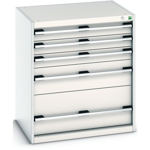 Armoire à tiroirs très robuste et de haute qualité. Tiroirs extractibles et pleinement accessibles. Glissières avec fermeture automatique et blocage de sécurité empêchant l'ouverture intempestive. Fabriqué au RU Charge maxi (kg) : 1500 kg