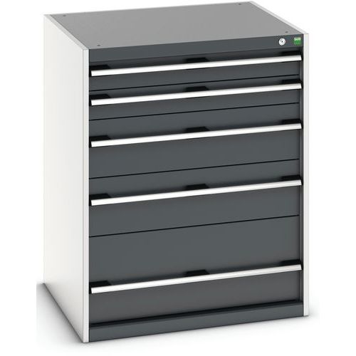 Armoire à tiroirs très robuste et de haute qualité. Tiroirs extractibles et pleinement accessibles. Glissières avec fermeture automatique et blocage de sécurité empêchant l'ouverture intempestive. Fabriqué au RU Charge maxi (kg) : 1500 kg