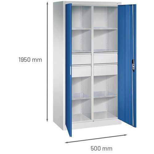 | Intitulé du produit | Armoire d'atelier CP-93, Charge maxi: 600 kg, Matériau: Acier, Hauteur hors tout: 1950 mm, Nb de tiroirs: 4 |