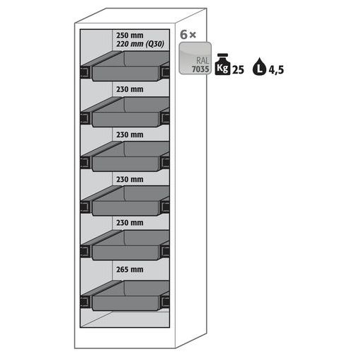 Armoire de sécurité Q-CLASSIC-30 Gris/Jaune RAL 1004, Hauteur hors tout: 1947 mm, Largeur hors tout: 564 mm Armoire de sécurité Q-CLASSIC-30 Gris/Jaune RAL 1004, Hauteur hors tout: 1947 mm, Largeur hors tout: 564 mm