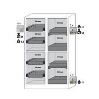 2 x étagère de rétention, 2 x bac de rétention au sol (PP), 4 x tiroir (tôle d'acier revêtement époxy)