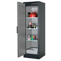 Stockage sécurisé, conforme à la réglementation en vigueur des produits dangereux, inflammables dans les zones de travail Fonction / Construction : Robuste et durable : structure extérieure acier, résistante aux rayures, peinture époxy, 3 charnières de fixation de porte, fermeture protégé contre la corrosion Ergonomique : la porte restent à la position lors de l´ouverture, fermeture automatique en cas d'incendie Utilisation controlée : porte verrouillable, compatible avec fermeture centralisée, indicateur de verrouillage des portes (rouge/vert) Transport facile : socle de transport intégré, plinthe disponible en option Installation facile : pieds réglables intégrés Aération et ventilation : système d'aération et de ventilation pour le raccordement à un système d´extraction ou de ventilation filtrée autonome, hélice sur la grille d'évacuation indiquant une ventilation