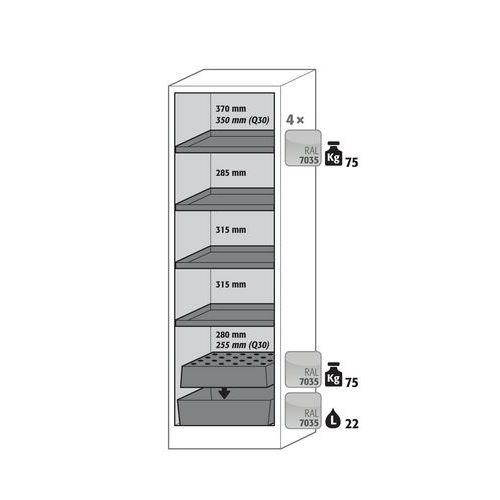 Armoire de sécurité Q-CLASSIC-90 Gris/Rouge RAL 3020, Hauteur hors tout: 1953 mm, Largeur hors tout: 599 mm Armoire de sécurité Q-CLASSIC-90 Gris/Rouge RAL 3020, Hauteur hors tout: 1953 mm, Largeur hors tout: 599 mm