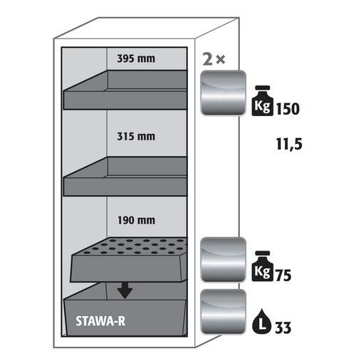 Armoire S-CLASSIC90 Maintien porte-Etagère rétention - 596mm - Asecos