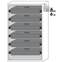 3 x étagère de rétention, 1 x bac de rétention au sol (PP), 6 x tiroir (tôle d'acier revêtement époxy)