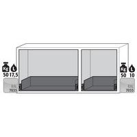 1 x tiroir, capacité de charge: 50 Kgs, volume: 18 Litres, tôle d'acier revêtement époxy, RAL 7035 gris clair 1 x tiroir, capacité de charge: 50 Kgs, volume: 10 Litres, tôle d'acier revêtement époxy, RAL 7035 gris clair