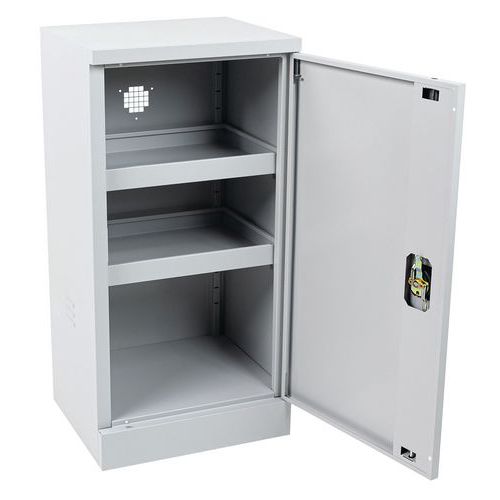 Armoire de stockage permettant le stockage de vos produits dangereux en toute sécurité. Orifices de ventilation pour raccordement à une ventilation Possède des étagères ajustables. Fermeture de porte manuelle.