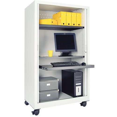 | Intitulé du produit | Armoire multimédia mobile à rideaux en tôle d'acier 8/10e, Plateau coloris: Gris, Nb de tablettes: 3 |