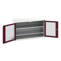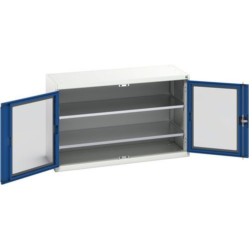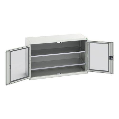 Armoire Verso Portes Transparentes Avec 2 Tablettes LxPxH: 1300x550x800mm RAL 7035 Fabriqué au RU Charge maxi par tablette (kg) : 75 Charge maxi (kg) : 1000