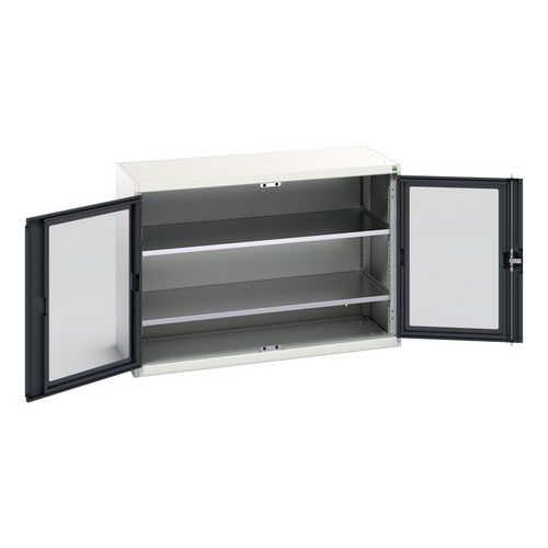 Armoire Verso Portes Transparentes Avec 2 Tablettes 1300x550x900 Fabriqué au RU Charge maxi par tablette (kg) : 75 Charge maxi (kg) : 1000