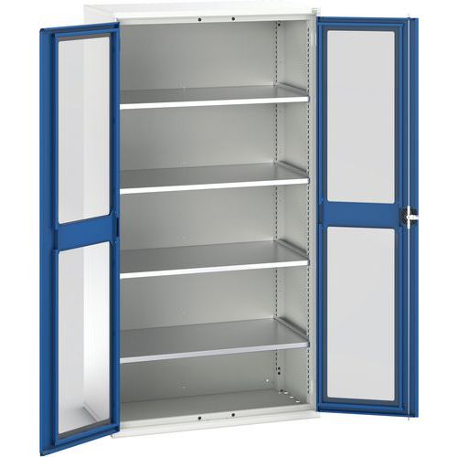 Armoire Verso Portes Transparentes Avec 4 Tablettes 1050x550x2000_Bott, Charge maxi: 1000 kg, Matériau: Acier