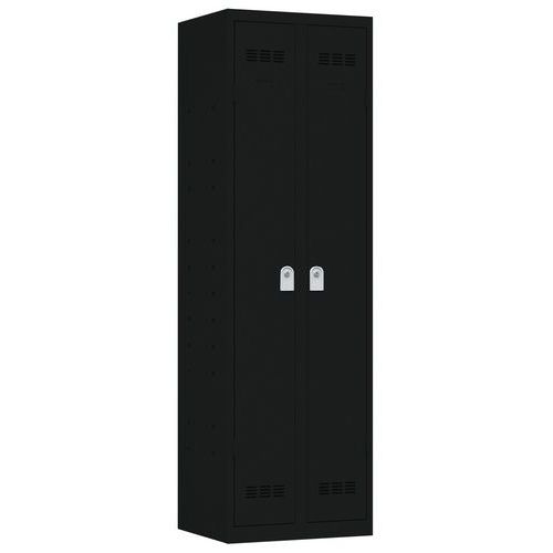 Vestiaire multiservices 2 portes. Composé d'une partie penderie et d'une partie rangement. Gamme moderne alliant qualité, sécurité et design. Soudés en usine, pour une robustesse optimale. Niveau très élevé de résistance à l'effraction. Conseils de sécurité : - installer le meuble sur une surface plane - le fixer sur un mur ou une cloison avec une fixation adaptée - veiller à ne pas dépasser la charge maximum conseillée, ainsi qu’à sa bonne répartition