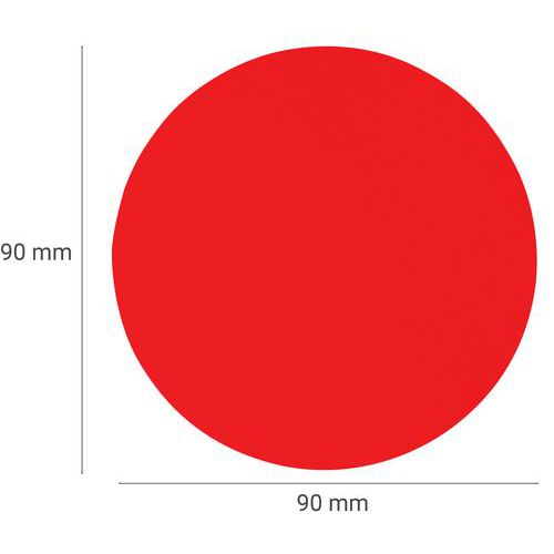 Autocollant marquage au sol rond 90 mm, Matériau: PVC, Largeur: 90 mm, Longueurs: 90 mm, Coloris: Rouge