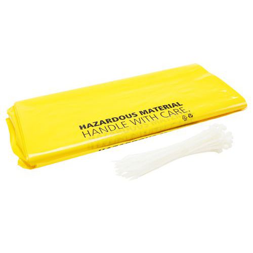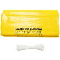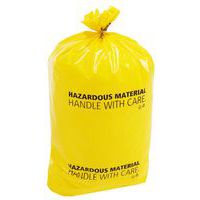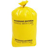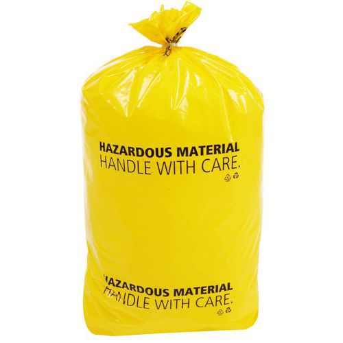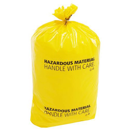 Sac de récupération résistant aux produits chimiques et aux déchirements. Message d'avertissement caution pour prévenir du danger des déchets collectés. Fabriqué au RU
