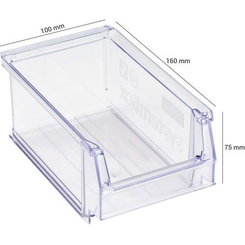 | Intitulé du produit | Bac à bec gerbable, Capacité: 1 L, Longueur hors tout: 160 mm, Largeur hors tout: 100 mm |
