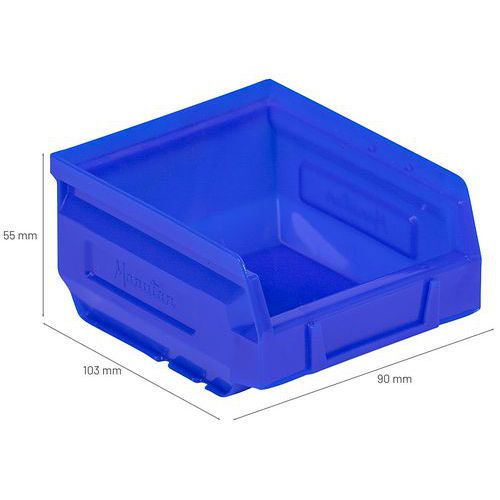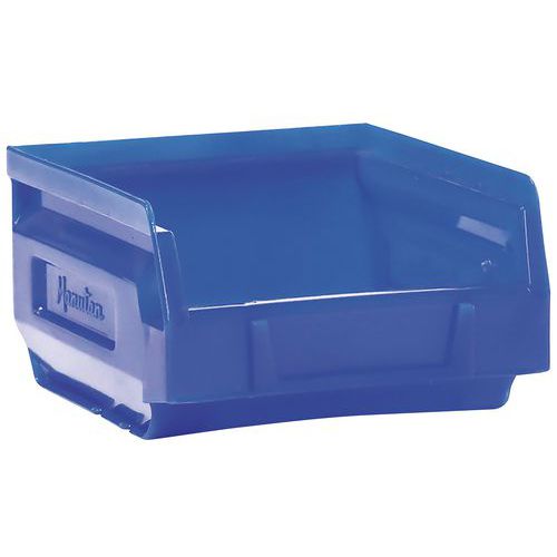 Rebords avec plots de blocage pour stabilité au gerbage. Grande robustesse grâce à ses nervures latérales. Fond plat et antidérapant pour une prise facile. Excellente prise en main par poignée avant. Bac plastique haute résistance aux chocs. Identification facile via porte-étiquette. Fabriqué en UE