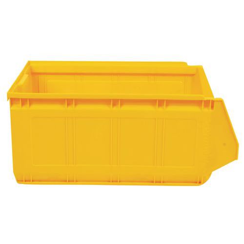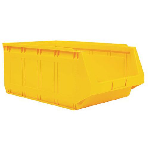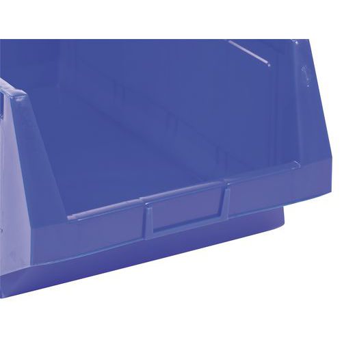 Rebords avec plots de blocage pour stabilité au gerbage. Grande robustesse grâce à ses nervures latérales. Fond plat et antidérapant pour une prise facile. Excellente prise en main par poignée avant. Bac plastique haute résistance aux chocs. Identification facile via porte-étiquette.