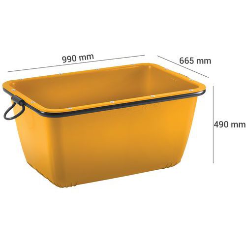 | Intitulé du produit | Bac à mortier 200 L, Capacité: 200 L, Hauteur hors tout: 490 mm, Largeur hors tout: 665 mm |