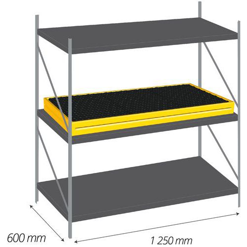 - Se pose simplement sur une étagère de rayonnage léger largeur 1230 mm.