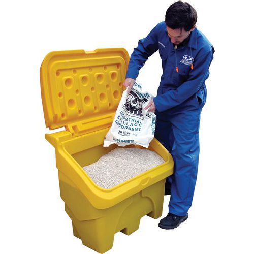 - Adapté au stockage du sable, du sel, et autres absorbants.
