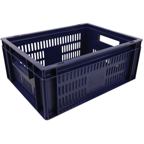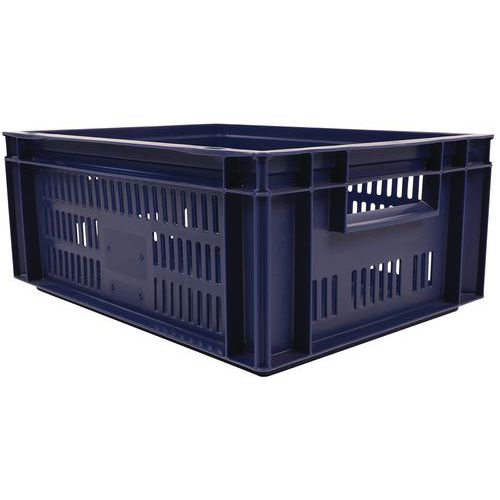 Bac norme Europe bleu à grande stabilité au gerbage. Large ventilation garantie avec les parois ajourées. Manipulation aisée grâce à ses larges poignées ouvertes. Résistance aux huiles, graisses et nombreux produits chimiques.