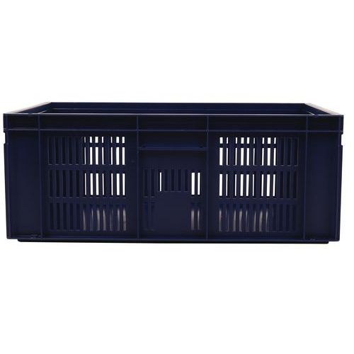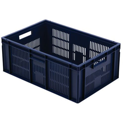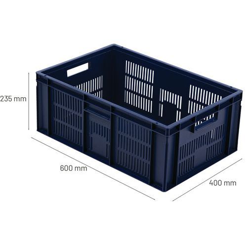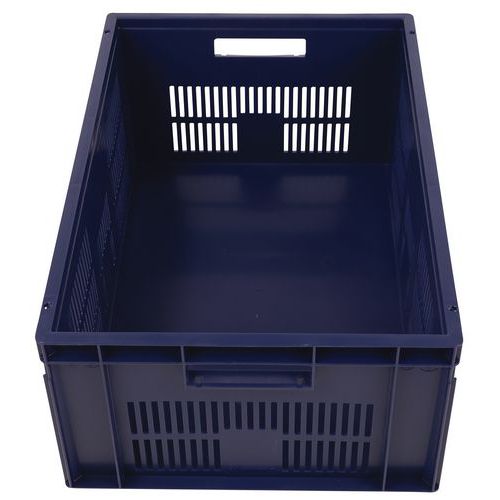 Bac norme Europe bleu à grande stabilité au gerbage. Large ventilation garantie avec les parois ajourées. Manipulation aisée grâce à ses larges poignées ouvertes. Résistance aux huiles, graisses et nombreux produits chimiques.