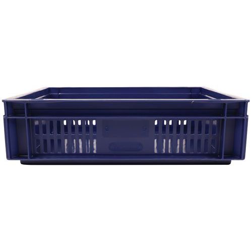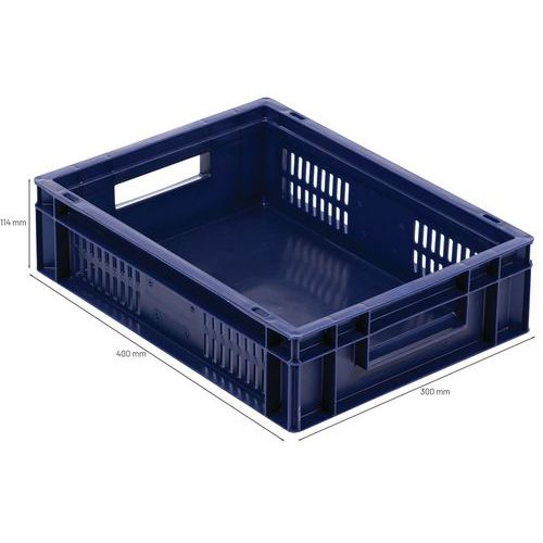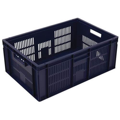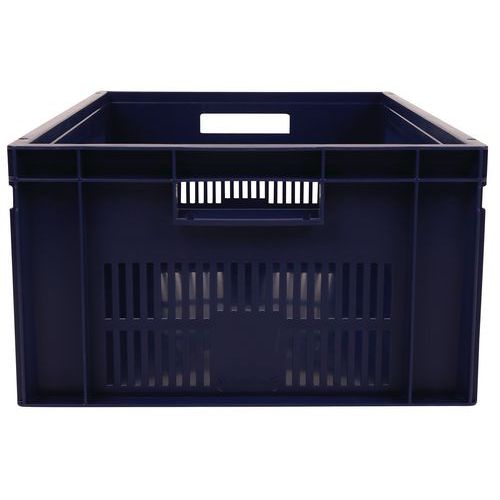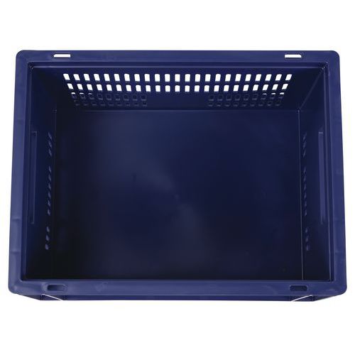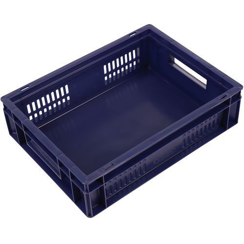 Bac norme Europe bleu à grande stabilité au gerbage. Large ventilation garantie avec les parois ajourées. Manipulation aisée grâce à ses larges poignées ouvertes. Résistance aux huiles, graisses et nombreux produits chimiques.
