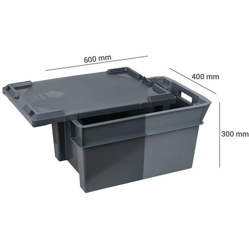 Bac aller-retour gerbable emboitable, Capacité: 50 L, Hauteur hors tout: 300 mm, Largeur hors tout: 400 mm