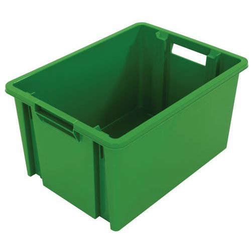 Bac emboîtable et gerbable équipé de poignées ouvertes facilitant la manutention.