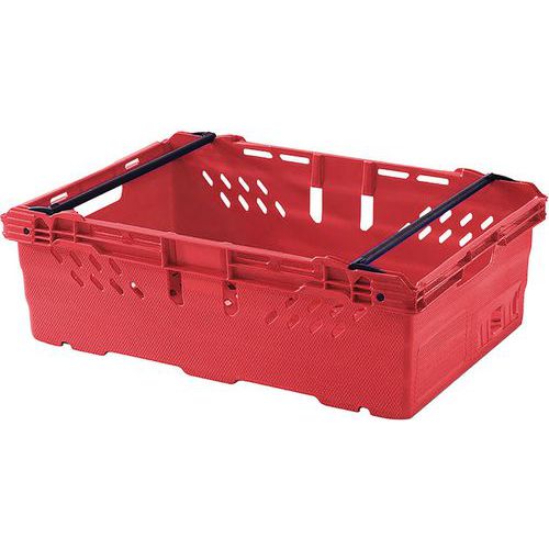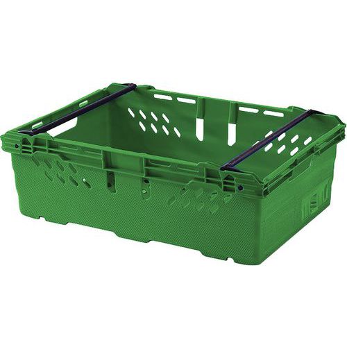 Bacs empilables et emboîtables avec deux poignées à barre oscillante aux dimensions norme Europe.