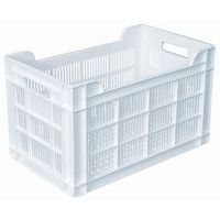 Caisse ajourée empilables Idéale pour le stockage des fruits et des légumes. Aération du contenu. Très résistante en utilisation intensive. Poignées intégrées ergonomiques pour une préhension facile et pratique. Couvercles caisses pleines adaptés également aux caisses ajourées. Les caisses ajourées 600x400 sont compatibles avec les socles 4 et 6 roues GILAC. Couvercles caisses pleines adaptés également aux caisses ajourées. Les caisses ajourées 600x400 sont compatibles avec les socles 4 et 6 roues GILAC. Froid/Surgelé Usage alimentaire Charge maxi (kg) : 60 kg
