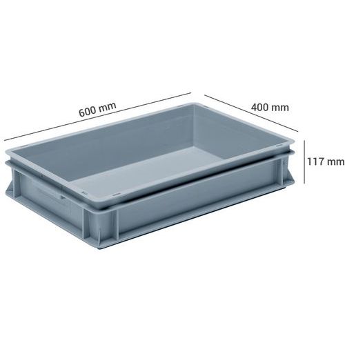 | Intitulé du produit | Bac gerbable norme Europe gris RAKO, Capacité: 20 L, Gerbable: oui, Hauteur hors tout: 117 mm |