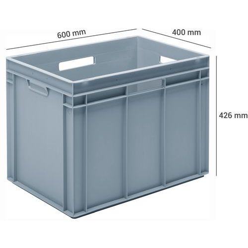 | Intitulé du produit | Bac gerbable norme Europe gris RAKO, Capacité: 90 L, Gerbable: oui, Hauteur hors tout: 426 mm |