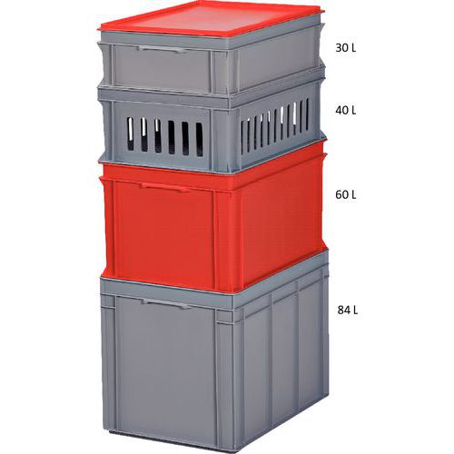 Bac norme europe inaltérable et ultra résistant aux chocs. Indéformable même si la charge est inégalement répartie. Grande stabilité au gerbage grâce à structure renforcée. Bac plastique de transport aisé avec poignées «coquilles». Volume de rangement intérieur optimal avec angles droits. Résistance aux huiles, graisses, sels, acides, détergents.