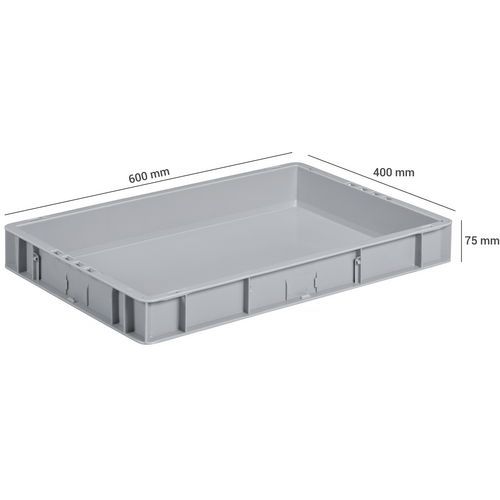 Bac norme Europe, Capacité: 14 L, Gerbable: oui, Hauteur hors tout: 75 mm, Largeur hors tout: 400 mm Bac norme Europe, Capacité: 14 L, Gerbable: oui, Hauteur hors tout: 75 mm, Largeur hors tout: 400 mm