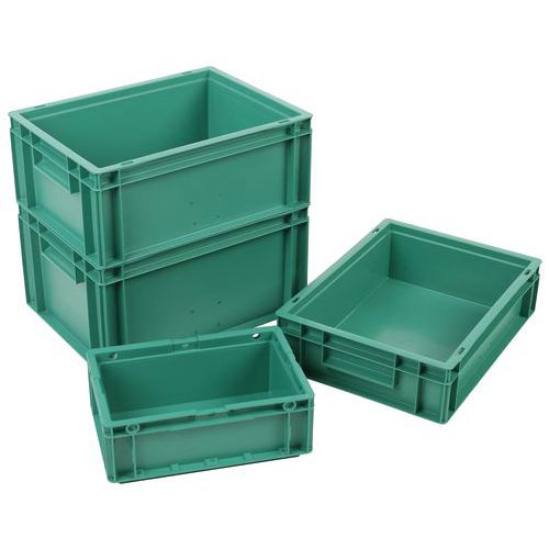 Bac norme Europe régénéré - Longueur 300 à 600 mm - 4 à 60 L - Manutan Expert Bac gerbable très robuste. Grande stabilité au gerbage grâce à ses rebords renforcés.