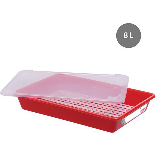 Bac plat gerbable et emboîtable HACCP avec couvercle - Longueur 445 à 491 mm - 5 à 8 L - Gilac